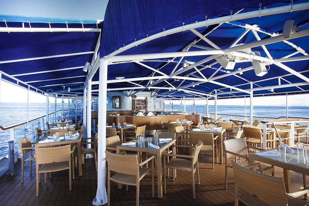 La Pinta Yacht is accommodating 48 guests, with ample social areas, an observation deck towards the bow, wrap-around windows, Jacuzzi, cardio-gym, kayaks, glass-bottom boat, sun deck, sun loungers, ideal for travellers looking for a sophisticated, upscale experience of the Galapagos Islands.