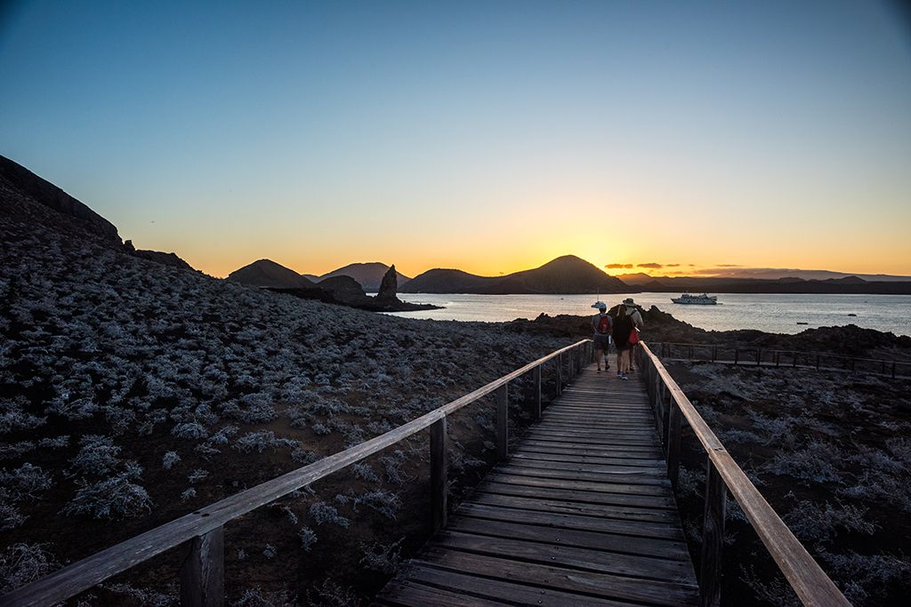 The tiny island of Sombrero Chino gets its name from its appearance, reminiscent of a Chinese hat. This islet, formed only fairly recently, makes a beautiful visit as one explores the wildlife along its 400-metre long trail, which begins at a crescent-shaped white sandy beach. The cove offers excellent swimming and snorkeling opportunities amid white-tipped reef sharks and Galapagos penguins.