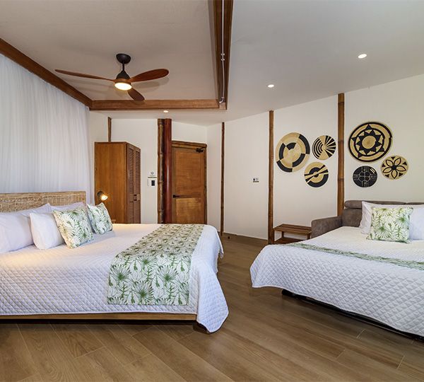 Our Family Staterooms provide the space and comfort that families traveling together will cherish. With a king bed for parents and two double beds for children, plus sofas and coffee tables, a private porch from which to admire the greens of the forest, plus a hammock for a relaxing siesta and hot tub for all to enjoy…