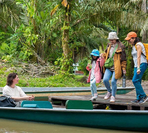 After a 30-minute commercial flight to Puerto Francisco de Orellana “El Coca”, our representative will take you to our office located along the Napo River pier in a private vehicle.