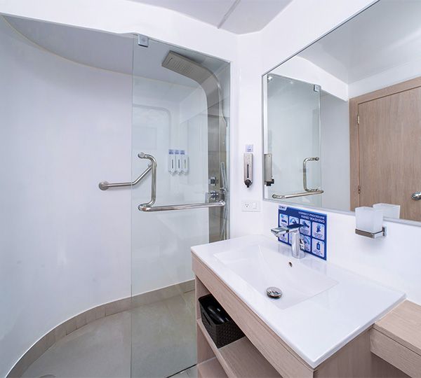 - 8 passengers cabins (20 m² / 215 ft²) with private balcony (1,90 x 1,20 m / 6.2 x 3.9 ft)