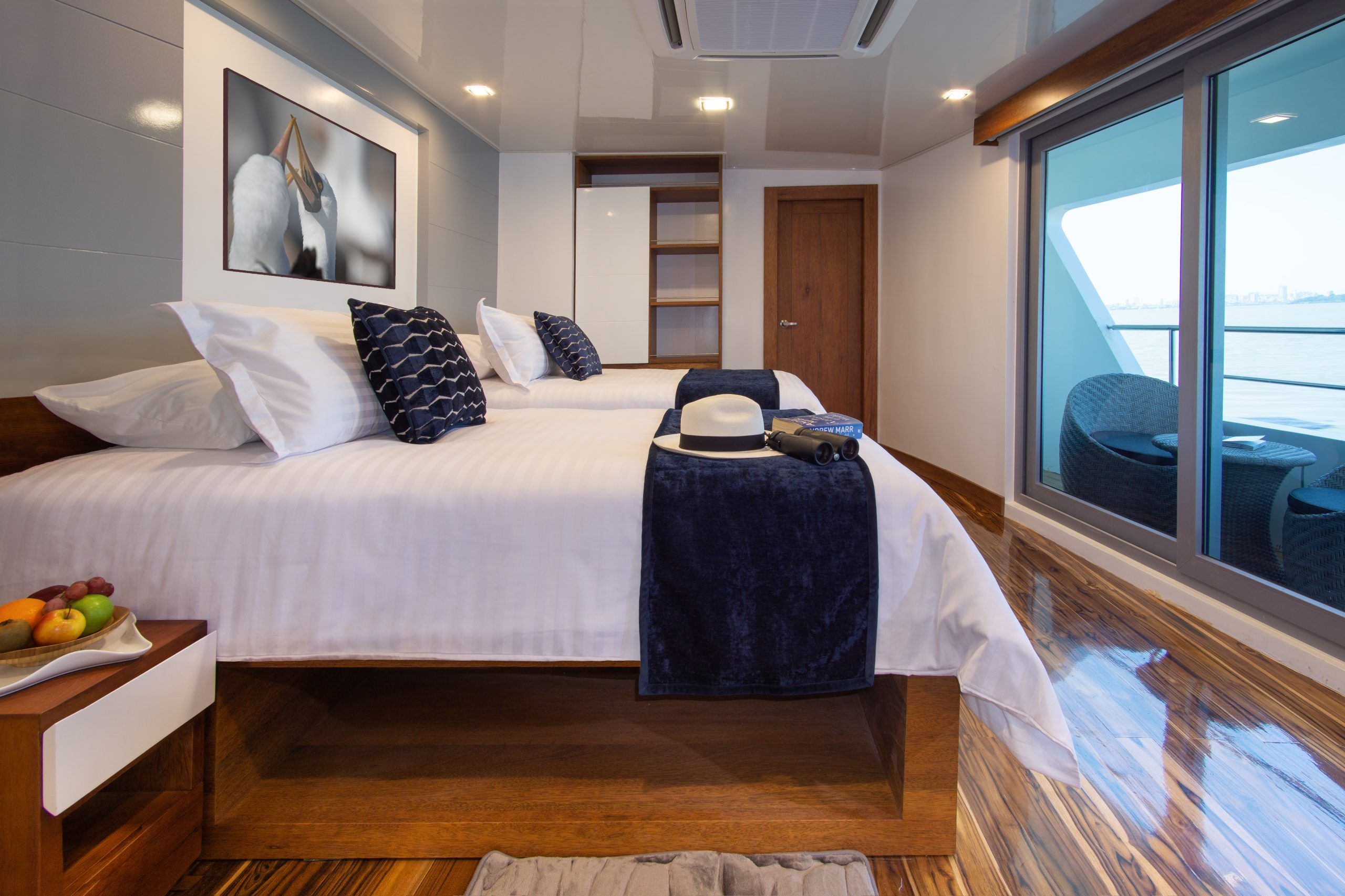 Утром вы прибудете на остров Балтра. После прохождения паспортного контроля и проверки багажа вас встретит персонал яхты и доставит на борт. Вас проведут в вашу каюту, где у вас будет некоторое время, чтобы отдохнуть перед обедом и вступительной беседой.