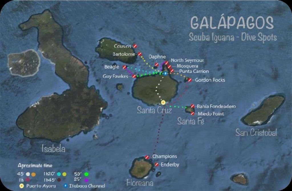 Расположение: к северу от острова Санта-Крус, 2 места для дайвинга, расположенные в 25 минутах от канала Итабака (северная сторона острова Санта-Крус).