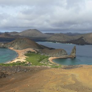 Bartolome Island is a volcanic islet in the Galápagos Islands group. It is a volcanic islet just off the east coast of Santiago Island. It is one of the “younger” islands in the Galápagos archipelago. With a total land area of just 1.2 km², this island offers some of the most beautiful landscapes in the archipelago. The island consists of an extinct volcano and a variety of red, orange, green, and glistening black volcanic formations. Bartolome has a volcanic cone that is easy to climb and provides great views of the other islands. Bartolome is famous for its Pinnacle Rock, which is the distinctive characteristic of this island, and the most representative landmark of the Galápagos. It has two visitor sites. You’re going to visit the first one.