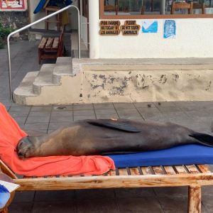 Today we will visit Leon Dormido, or Kicker Rock. It is an amazing rock formation near San Cristobal Island, one of the best spots for snorkeling. This amazing landmark located about an hour and a half to the north east of Puerto Baquerizo Moreno, Kicker Rock / Leon Dormido, is a remnant of a vertical tuff cone formation, rising almost 153 meters (500 feet) from the ocean. The erosion has given the rock its characteristic shape, which some see as a shoe, hence the name Kicker Rock. Others see it as a sleeping sea lion or Leon Dormido in Spanish. While you snorkel around Kicker Rock you can spot sea turtles, marine iguanas, rays, Galapagos sharks, tropical fish and if luck is on your side you can even see hammerhead sharks. Besides enjoying the underwater view, you can usually see blue-footed boobies, masked boobies and frigatebirds on the cliffs as well as sea lions along the shore.