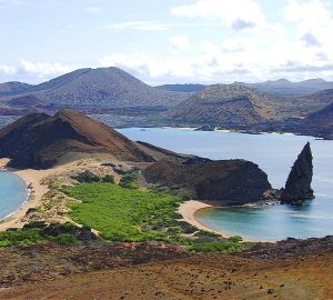 Bartolome is one of the most famous points in the Galapagos, located across from Sullivan Bay off James Island. The first of the two main visitor sites provide the possibility to climb to the summit of the island, from where visitors can observe a variety of volcanic formations including lava bombs, spatter and cinder cones, lava flows, and lava tubes. The moon like landscape provides one of the most scenic panoramas in the archipelago.