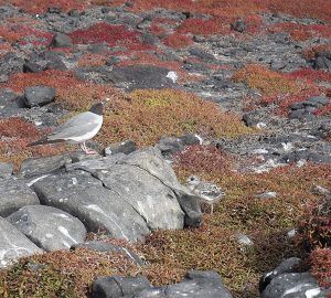 Punta Moreno is located on the north coast of Isabela Island between the volcanos Sierra Negra and Cerro Azul. The distance of the trail is about 2100 meters and runs along a lava flow of “Pahohoe” type lava (solidified lava in the form of corrugated cardboard or an accordion) into a complex of coastal lagoons. The vegetation found in the area is small and concentrated mainly in the mangrove area and around the lakes. It should be noted that the three kinds of cacti are found here amid black lava flows where there are several species of interesting birds. Here we also find a panoramic view of the three most active volcanoes of the Galapagos: are Sierra Negra, Cerro Azul both of Isabela Island and La Cumbre of Fernandina Island. Unfortunately until the 1970’s a population of wild dogs that existed on this site fed on marine iguanas, sea lions and other marine species and drank the abundant brackish water present here, but are now eradicated. After this visit we return to the boat for lunch and a short rest before heading into our afternoon activity.