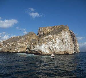 From here, we take panga rides along the cliff to observe the remains of the volcano or explore a partially sunken cave at the water’s edge. Masked and blue-footed boobies sit perched along the point and the sheer cliffs, while flightless cormorants inhabit the shoreline.