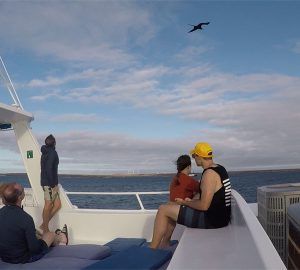 With more than 20 years of experience, the Fragata crew is here to assist you and make sure that your Galapagos experience is extraordinary. Eight crewmembers include: a highly qualified captain, a bilingual naturalist guide, chef, chef’s assistant, barman, engineer, and two sailors.