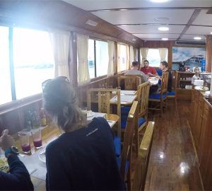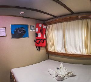 All of the comfortable cabins are carpeted and have private bathrooms with a toilet, shower with hot water, sink and vanity. The yacht’s amenities include ample dining room, spacious living room, bar, library with TV and DVD, music system, sundeck, and diving platform. The boat is fully air-conditioned with units in every cabin. The boat also has full snorkeling equipment and wetsuits available for rent upon request.