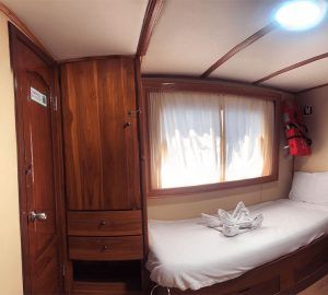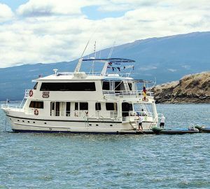 The Fragata is a spacious and comfortable owner-operated motor yacht that accommodates 16 passengers in cozy double, matrimonial and single cabins, all decorated and equipped to provide guests a relaxing cruise in the Galapagos islands.