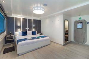 This cruise can comfortably accommodate 16 travelers who can choose 4, 5 or 8-day itineraries, visiting the most outstanding points in the islands, led by a certified bilingual naturalist guide and enjoying excellent service provided by crew members and a cruise director.