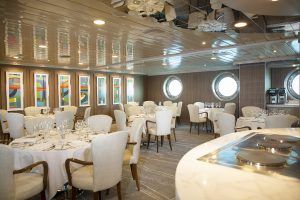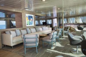 La Pinta Yacht is accommodating 48 guests, with ample social areas, an observation deck towards the bow, wrap-around windows, Jacuzzi, cardio-gym, kayaks, glass-bottom boat, sun deck, sun loungers, ideal for travellers looking for a sophisticated, upscale experience of the Galapagos Islands.