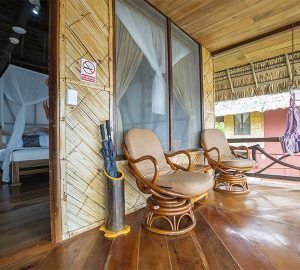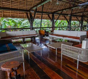 The main hall features a 360° view of the Lake and the natural gardens and it is decorated with local artworks, hammocks and comfortable couches where you can relax while enjoying the views and natural sounds surrounding the lodge.