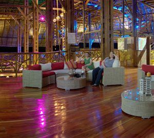 It is the central structure and the place where all meals are served It offers several comfortable social areas such as a restaurant, a bar, a reading lounge area with a library, a shopping boutique and a 19 meters tall observation tower.