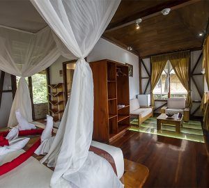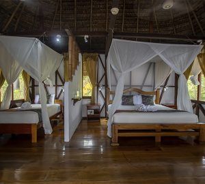 Napo Wildlife Center lodge features an open-air main hall decorated with local handicrafts and 12 huge and spacious standard cabins and 8 suites that combines perfectly the traditional architecture and a luxury style.