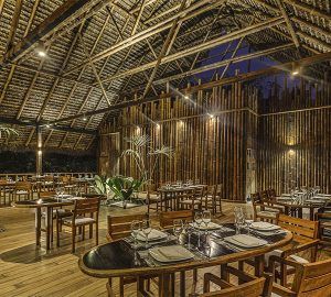 The rustic, airy restaurant offers a relaxed atmosphere for dinner with its windows open, allowing the cicadas evening song to circle. An a la carte dinner is served in the restaurant, bringing fine dining to the jungle. Using fresh and sustainable products, our chef prepares meals to delight the tastes of a world traveler while satisfying the appetite of an adventurer!