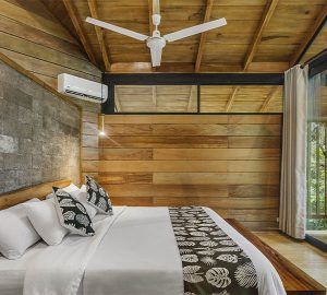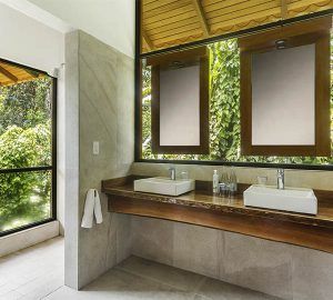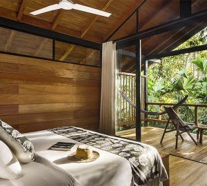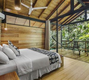 Lodging at Sacha combines the highest comfort to the traveller with the preservation of the environment and rainforest ambience. All of our cabins, with high thatched roofs and private shaded terraces with hammocks, are constructed with traditional materials and nestle subtly into the lush surroundings. Each of the 26 rooms, which include single, double and (upon request) triple accommodations and three family cabins, provides a spacious private bathroom with flushing toilet and hot shower – some even feature floor-to-ceiling windows for an immersive jungle shower experience! All cabins are screened against insects, and contain ceiling fans above two comfortable double beds.