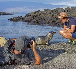 - Puerto Egas: A walk along the rocky coastline that will show you a view of some of Galapagos’ best tide pools. Some highlights include Sugar loaf volcano, fur seals, oystercatchers, marine iguana colony, and an old salt mine.